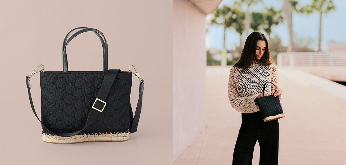 The Stand-Up Handbag Collection features 23 styles that are the first of their kind to utilize the sole of an espadrille sandal, not only to add a unique, elevated look to their design, but to also aid the function of the accessory. No more worries about where to place your bag when you are out for a night on the town or grabbing drinks and dinner with friends. Sole Purpose handbags literally stand-up beside you keeping your contents secure and the bag fabric protected from dirty surfaces.
